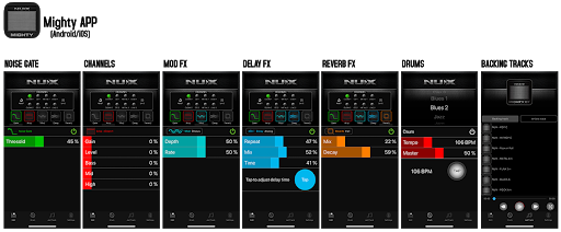 For example: you can a select Delay or Reverb and you can adjust the Mix and Repeat parameters on the amplifier's panel. And with the mobile APP; you can choose one of the three types of Delay effects and you can reach the Repeat, Mix and Time parameter controls (and the mobile TAP TEMPO) AND there are also three types of Reverb effects, you can control the Decay and Mix parameters. Plus, you can control the drum machine as well.